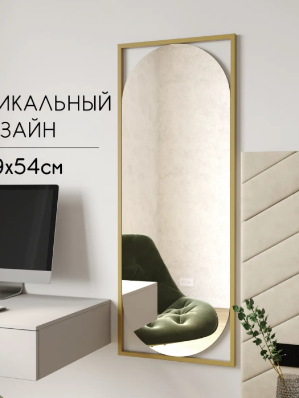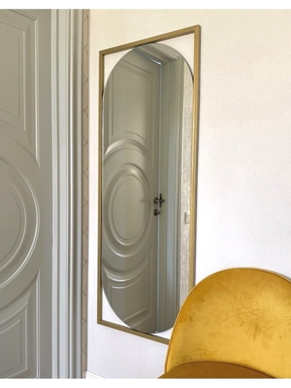 Дизайнерское настенное напольное зеркало Glass Memory Lustrous в металлической раме золотого цвета в Выксе